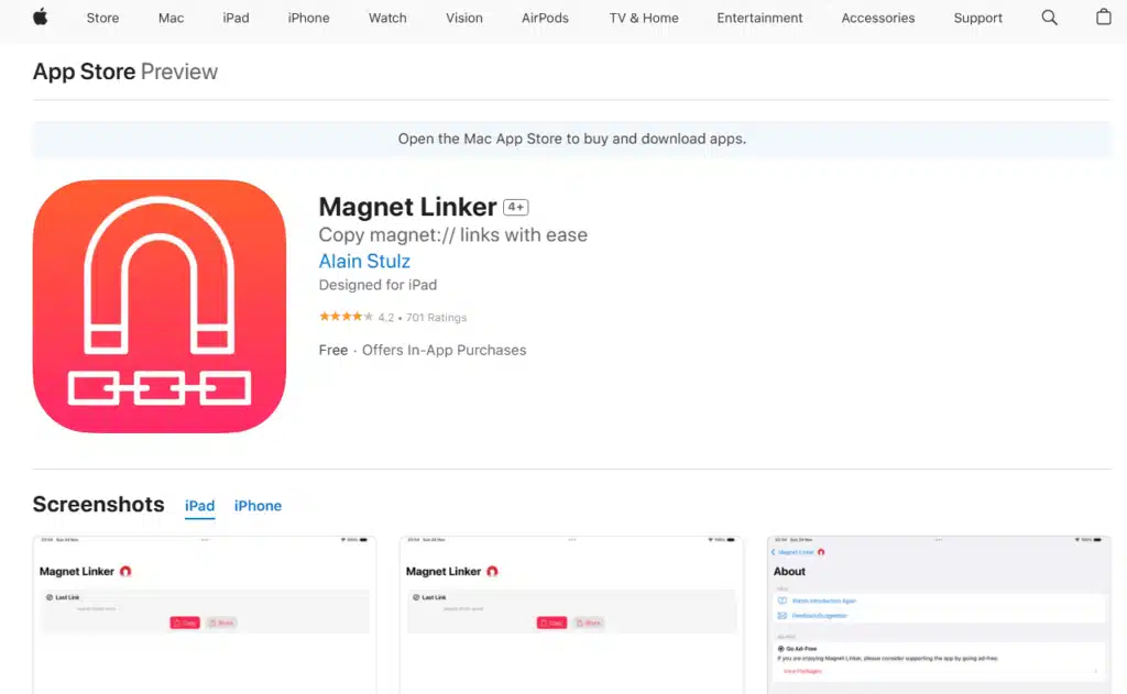 Magnet link utilities make it easier to handle torrents on iPhone if you prefer using cloud services. Apps like Magnet Linker let you tap on a magnet link in iOS and forward it directly to platforms such as Seedr or Bitport.